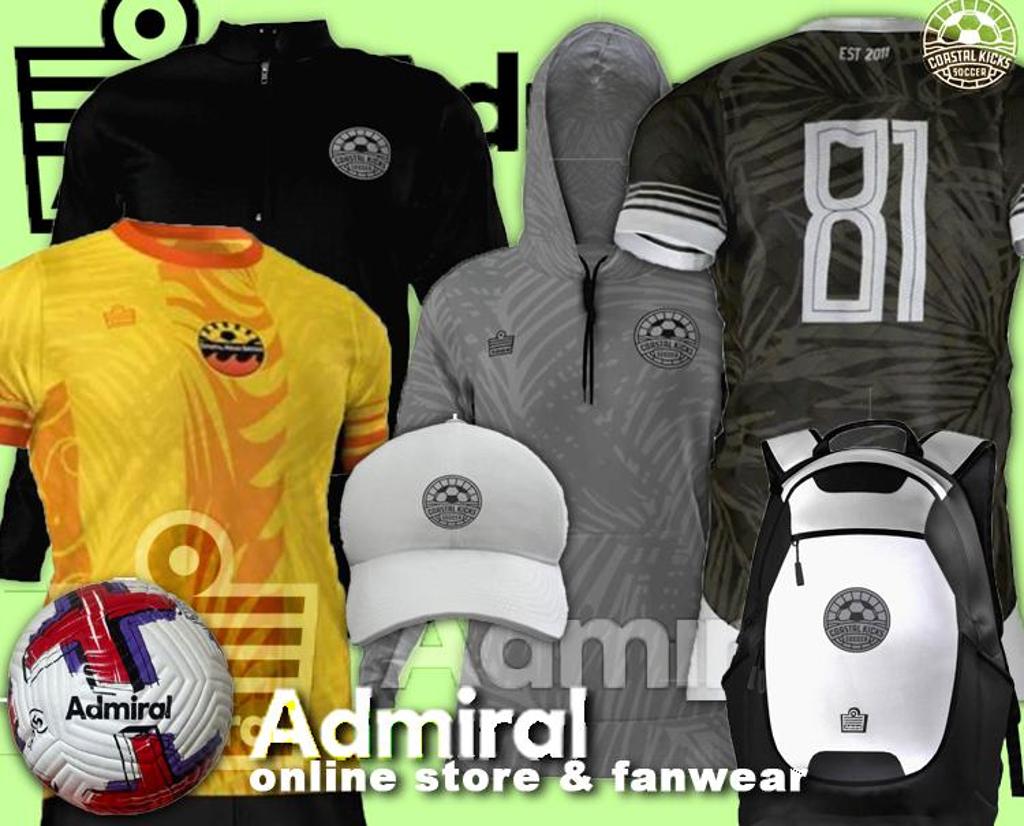 Coastal Kicks welcomes ADMIRAL as the new uniform sponsor of the club. Click links for Competitive and Recreational programs as well as a new tabs for training gear and outerwear with everything from t-shirts and hoodies to backpacks, shinguards, balls and training gear!!